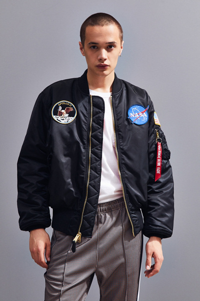 Phiên bản đặc biệt NASA MA-1 của áo khoác bomber jacket kỷ niệm sứ mệnh tàu con thoi thứ 100. với chất liệu kaki cửa dây kéo phía trước gia tăng sự ấm áp và một cổ áo đan, còng + dây thắt lưng.